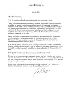 JOE BIDEN anuncia que renuncia a la reelección a la presidencia: «Ha sido el mayor honor de mi vida servir como su presidente. Y aunque ha sido mi intención buscar la reelección, creo que es en el mejor interés de mi partido y del país que me retire».