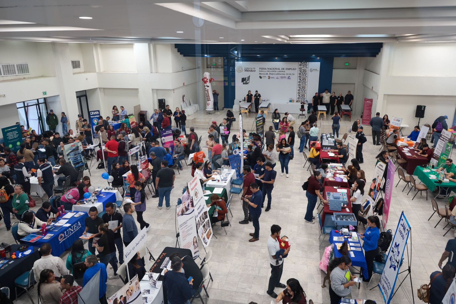 MEXICALI.- La Secretaría del Trabajo y Previsión Social (STPS), a través del Servicio Nacional del Empleo (SNEBC), acercó más de mil vacantes de empleo en el marco de la Feria para la Inclusión Laboral, organizada en conjunto con la Cámara Nacional de Comercio de Mexicali (CANACO).