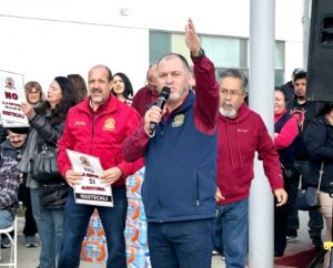 Ensenada, B.C.-La burocracia de Ensenada se encuentra reunida en la explanada de Gobierno del Estado para llevar a cabo la asamblea extraordinaria en manifiesto al rechazo de una posible reforma de Ley de ISSSTECALI.