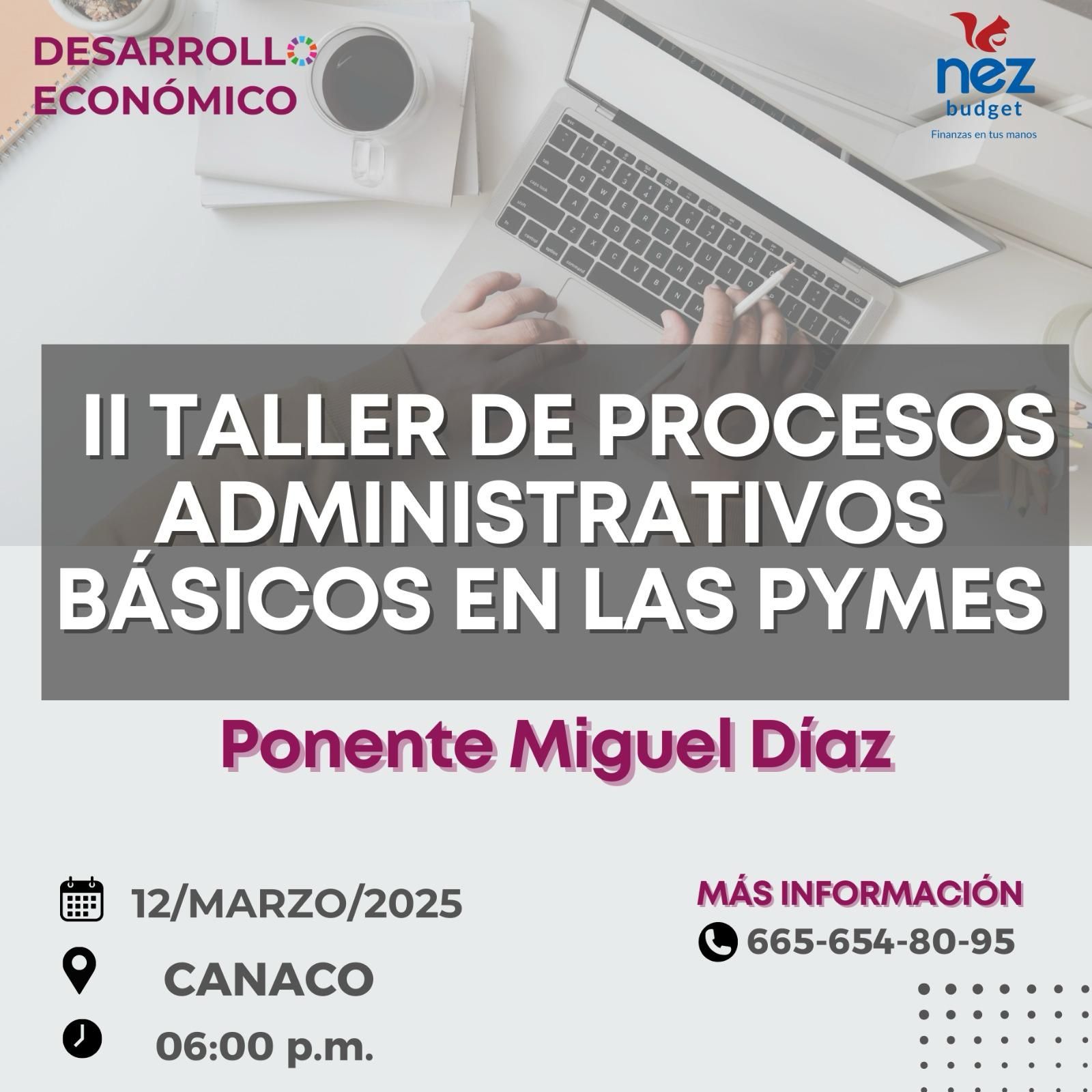 El taller se realizará el próximo 12 de marzo de 2025 a las 06:00 p.m. en las instalaciones de CANACO. Contará con la participación del reconocido especialista Miguel Díaz, quien compartirá conocimientos clave sobre la administración efectiva de negocios, optimización de procesos y buenas prácticas empresariales.