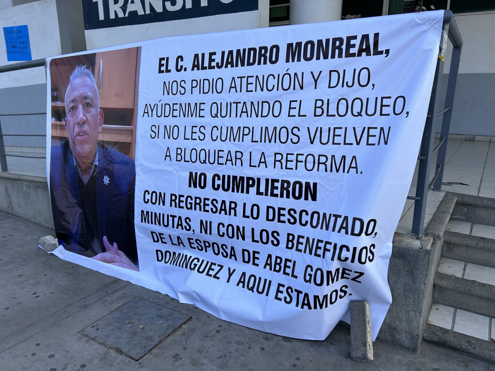 Colocan manta en contra del Director de Seguridad Pública Municipal, Alejandro Monreal Noriega