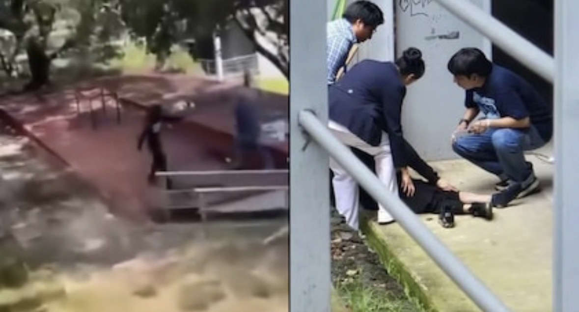 El estudiante portaba una capucha al momento de los hechos, intentó huir. Sin embargo, al percatarse de que era perseguido, subió a un edificio dentro del plantel y se lanzó, lo que ocasionó que se fracturara ambas piernas.