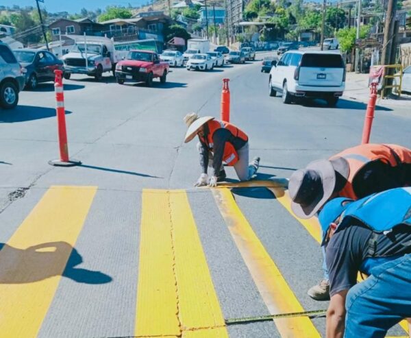 INPRODEUR lleva a cabo trabajos de pintura en cruceros para mejorar la seguridad vial en zonas de alta circulación._ Tecate, Baja California a...