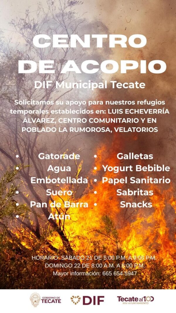 DIF MUNICIPAL TECATE INSTALA CENTRO DE ACOPIO EN APOYO A REFUGIOS TEMPORALES POR INCENDIOS FORESTALES